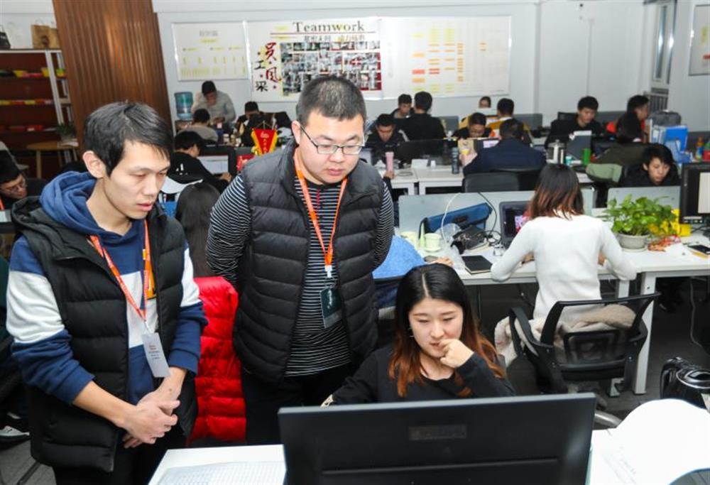 在4樓眾創(chuàng)空間,聚集著50多家在孵跨境電商企業(yè),多數(shù)都是90后創(chuàng)業(yè)人員。25日臨近傍晚6點(diǎn),不少創(chuàng)客仍埋頭忙碌。在眾創(chuàng)空間打造的咖啡吧,幾個(gè)年輕人正探討業(yè)務(wù)。